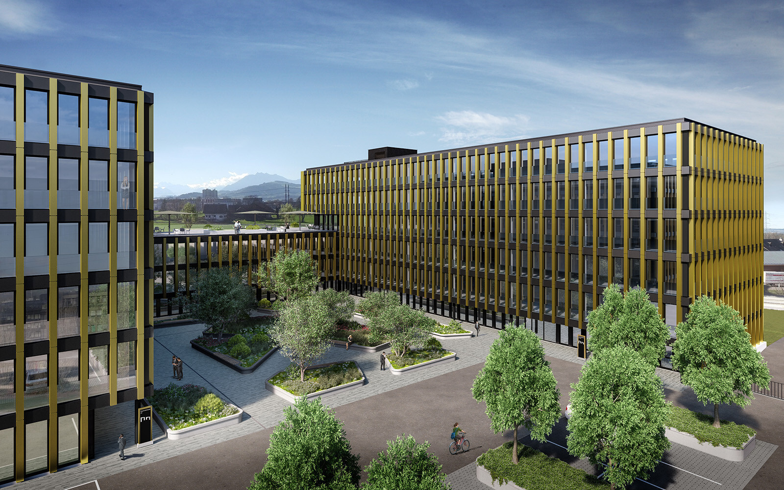Die Alfred Müller AG realisiert in Baar im steuergünstigen Kanton Zug ein grosses und markantes Bürogebäude. Das Bauwerk verfügt aufgrund seiner Lage, Volumetrie und der goldigen Fassade über eine äusserst starke Ausstrahlung. Es eignet sich deshalb besonders gut als Single Tenant-Objekt. In einer ersten Phase sollte jedoch parallel ein Multi-Tenant-Ansatz verfolgt werden.