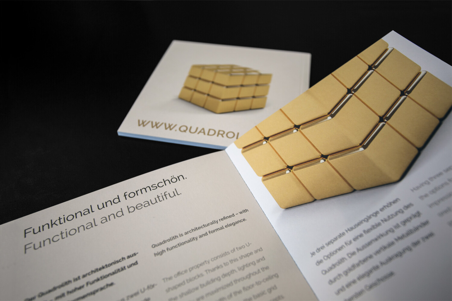 Für das markante Bauwerk entwickelte Stephan Wegelin in der Folge die Produktmarke «Quadrolith». Der Claim lautet: «Einfach. Goldrichtig». Damit konnte er eine glaubwürdige Marke schaffen, welche die Markanz und klare Linienführung der Architektur aufnimmt. Zudem erwies sich der Begriff Quadrolith als unbenutzt, schützbar und frei für Domainadressen. Weitere Vorteile sind Prägnanz, einfache Aussprache, gute Verständlichkeit und kulturelle Unbedenklichkeit.